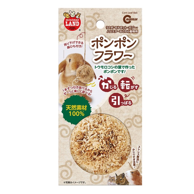 ・楽しくかじってうさぎ・モルモットなどの小動物のストレス解消やおもちゃにピッタリです! ・本体をかじったり、トウモロコシの葉を1本ずつ引き抜いたりして遊ぶことができます! 〈材料〉 本体:コーンリーフ(トウモロコシの葉) ヒモ:麻
